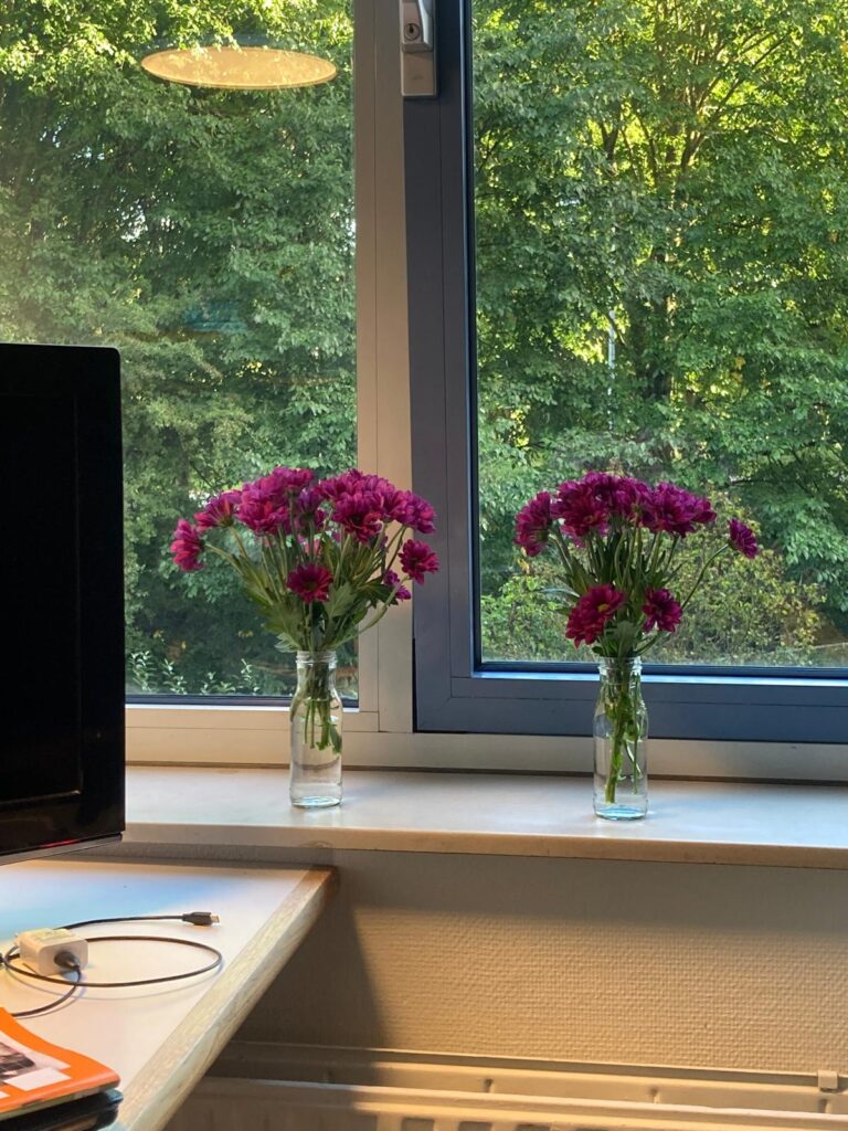 Het bloemetje van Neziya staat er florissant bij (foto Klaaske)