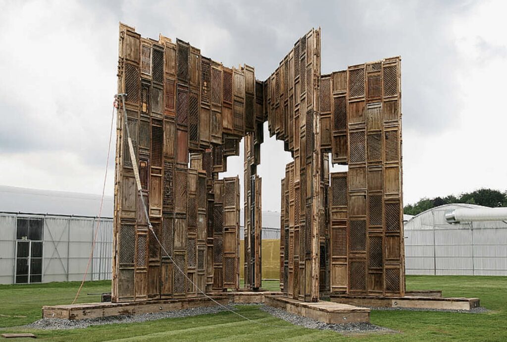 Zó vanuit de strakke hoogbouw van Beijing, kom je via een vergeten straatje in 798 District. Vorm en kleur hebben er vrij spel… [web foto] [vergroten door te klikken] Een van de tot tentoonstellingsruimte omgebouwde fabriekshallen [web foto] [vergroten door te klikken] Ai Wei Wei,Template, Documenta 12, Kassel, Duitsland, 2007. Installatie van 1001 oude Chinese deuren en ramen van gesloopte huizen uit de Qing-dynastie, gestapeld om een architecturale structuur te vormen. [vergroten door te klikken]