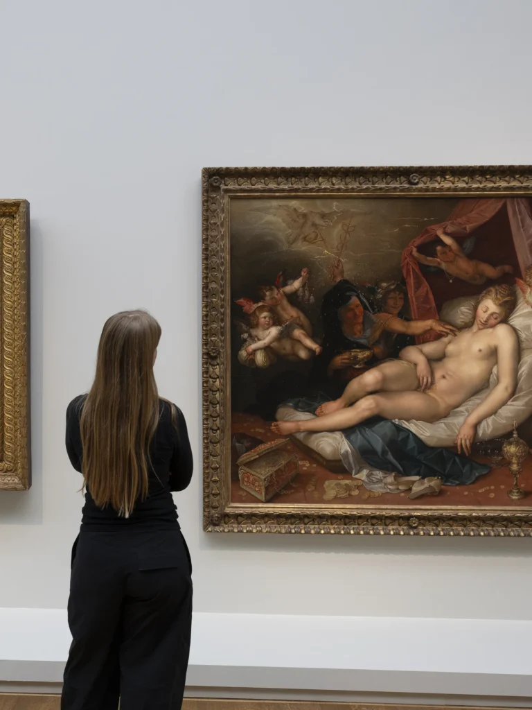 Hendrick Goltzius, Danaë ontvangt Jupiter in de gedaante van een regen van goud, 1603. Rijksmuseum in Amsterdam, foto van de ‘Metamorfosen’ tentoonstelling.