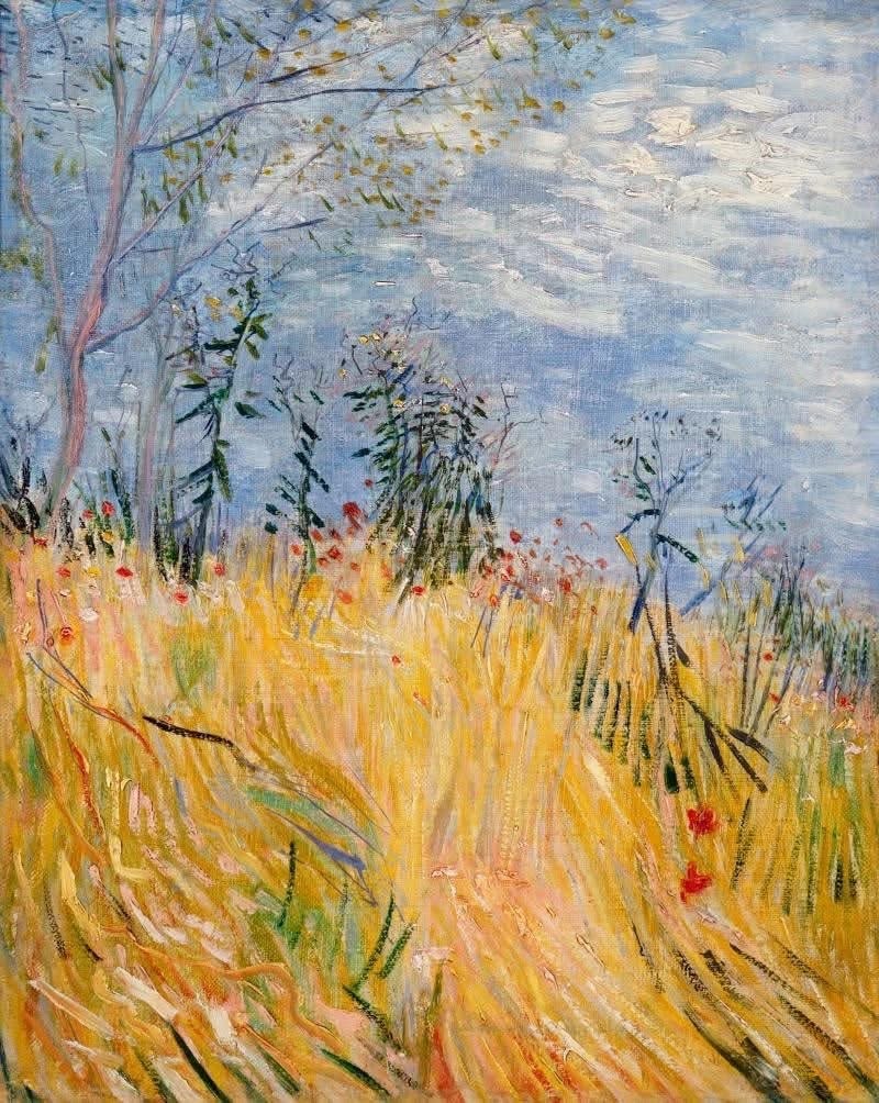 Dit schilderij is “De witte boomgaard” van Vincent van Gogh. Het is gemaakt in 1888, toen Van Gogh in Arles was. Dit is het schilderij Zonsondergang bij Montmajour van Vincent van Gogh.