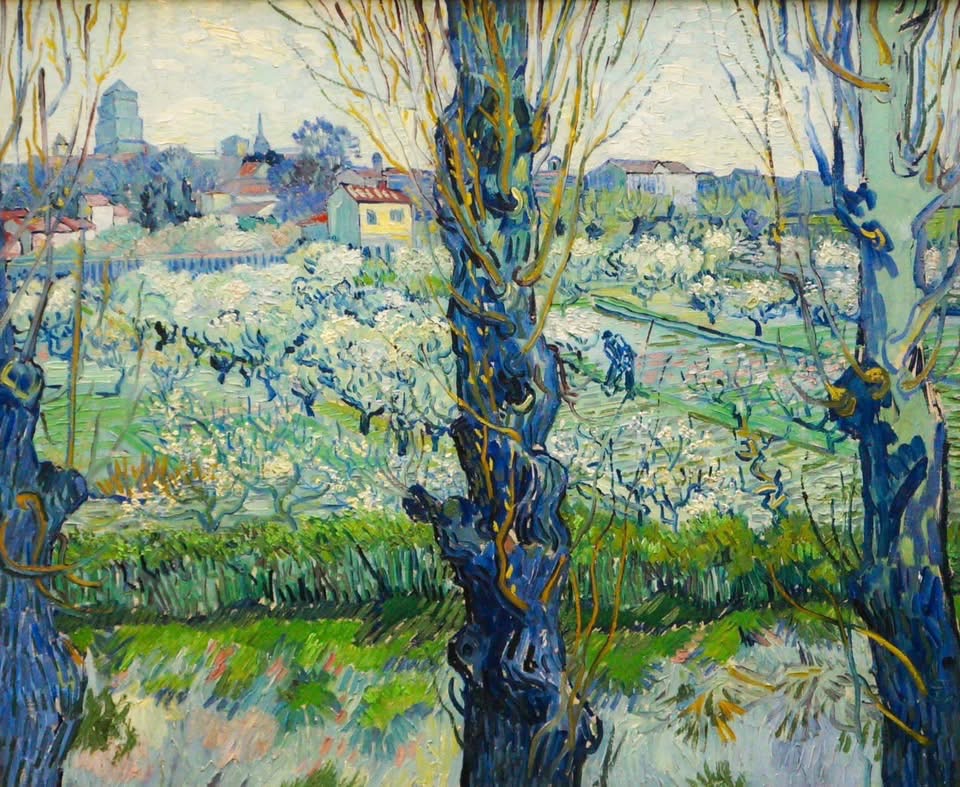 Repaired en reposted27 juni 2020 Gestrand op weg naar een verre bestemming, bracht ik mei 2020 een onverwacht bezoek aan het Kröller Müller Museum. Ik was bij de ingang van de Hoge Veluwe al gewaarschuwd dat bezoek aan het museum nog steeds aan het corona regime onderhevig was: ‘Uitsluitend op afspraak…’ Maar vertrouwend op mijn goede gesternte, mijn museumkaart en mijn zeventien Tropen(museum)jaren, wist ik toch binnen te geraken. En eenmaal binnen, had ik alleen maar belangstelling voor Van Gogh… Al gauw liep ik de vertrouwde zalen binnen – waar nu overal bordjes met ‘Maximaal vier personen’ hingen. Nauwelijks was ik, binnen het quotum, een zaal binnengelopen, of ik zag dit schilderij hangen. Er voer een kleine schok door me heen…
