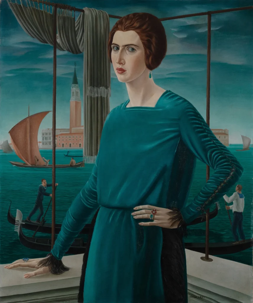 Ubaldo Oppi: The Artist’s Wife with Venice in the Background, (1921)