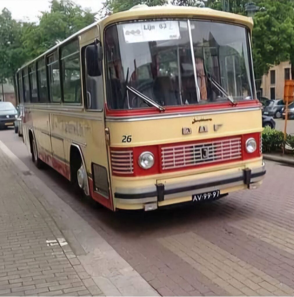 (rechts) 6 januari 2026. “Is dit geen pareltje van de familie van Gogh (tours)? Ik kwam deze foto tegen in mijn galerij. Ik plaats deze foto omdat ik in de 90'r jaren bij Hans & Piet van Gogh heel hun bussenpark bij hield met schoonmaken. Dit samen met nog een 6 tal collega's. Dit was een van hun bussen. Veel avond uurtjes daar doorgebracht om mijn bijverdienste er bij elkaar te sprokkelen. Het pand van 'Van Gogh Tours' staat er nog steeds maar zit nu V&V transport gevestigd. Wat gaat de tijd toch snel🫶🙏”