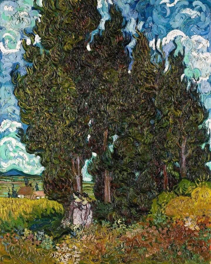 Cypresses with Two Figures, 1889–1890